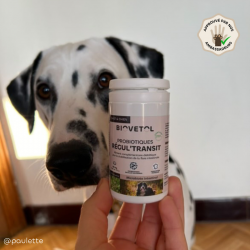 Le Régul'transit grand chien (+ de 10 kg) de Biovetol est l'allié secret des ventres de nos grands compagnons ! Imaginez une armée de défenseurs de la digestion, qui se précipitent pour stabiliser le traitement de l'alimentation de votre chien préféré. Ces bactéries vivantes sont là pour garantir une flore intestinale aussi heureuse qu'un chien gambadant dans un champ de fleurs.