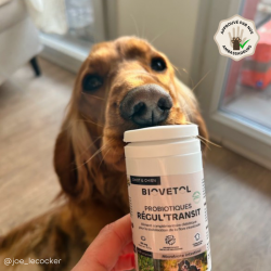 Le Régul'transit grand chien (+ de 10 kg) de Biovetol est l'allié secret des ventres de nos grands compagnons ! Imaginez une armée de défenseurs de la digestion, qui se précipitent pour stabiliser le traitement de l'alimentation de votre chien préféré. Ces bactéries vivantes sont là pour garantir une flore intestinale aussi heureuse qu'un chien gambadant dans un champ de fleurs.