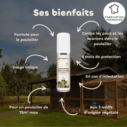Et si vous pouviez transformer votre poulailler en un oasis de sérénité ? C’est possible grâce au diffuseur Poulailler Biovetol conçu à partir d'actifs d'origine végétale. En l’utilisant vous montrez la porte aux poux et aux acariens, sans oublier les tiques, araignées, blattes, et autres créatures à six ou huit pattes. Votre coin de paix est désormais simplement protégé.