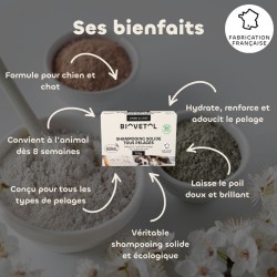 Ce shampooing solide BIOVETOL est équivalent à 500ml de shampooing liquide, de quoi profiter de ce produit jusqu’au bout des poils.