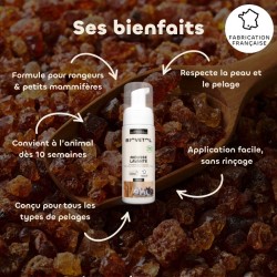 3. Massez délicatement le pelage de votre animal pour permettre à la mousse de pénétrer en profondeur et de déployer ses vertus nettoyantes et odorantes.