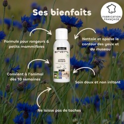 Dès les 10 semaines de l'animal. Fini le temps où nettoyer le museau et le contour des yeux ressemblait à une mission d'infiltration avec pinces et mouchoirs. Notre lotion créée à partir d’actifs d’origine végétale est facile d'utilisation, désincruste la saleté collée aux poils et ne laisse pas de taches. En prime, elle pourrait bien donner l'impression à votre animal d'avoir été dorloté par une brise végétale légère.