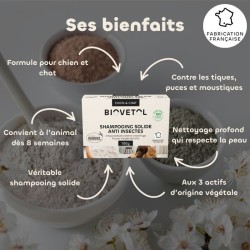 Ah la vie de nos chiens et chats ! Une épopée quotidienne entre les escapades dans le jardin, les séances de roulades dans les parcs et les explorations sous le canapé. Avec tant d'aventures, il n'est pas surprenant qu’ils reviennent boueux, poussiéreux, ou remplis de parasites. Mais n'ayez crainte, BIOVETOL a pensé à leur hygiène en créant un produit certifié par Ecocert Ecosoin des animaux. Son format solide est écologique et économique. Il consomme moins de matière plastique et contient plus de produit. Vous faites un petit geste pour la planète et votre portefeuille.