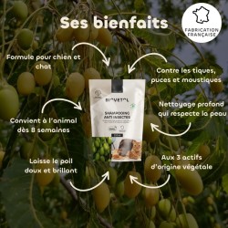 Ah la vie de nos chiens et chats ! Une épopée quotidienne entre les escapades dans le jardin, les séances de roulades dans les parcs et les explorations sous le canapé. Avec tant d'aventures, il n'est pas surprenant qu’ils reviennent boueux, poussiéreux, ou remplis de parasites. Mais n'ayez crainte, BIOVETOL a pensé à leur hygiène en créant un produit certifié par Ecocert Ecosoin des animaux. Son format recharge est écologique et économique. Il consomme moins de matière plastique et contient plus de produit. Vous faites un petit geste pour la planète et votre portefeuille.